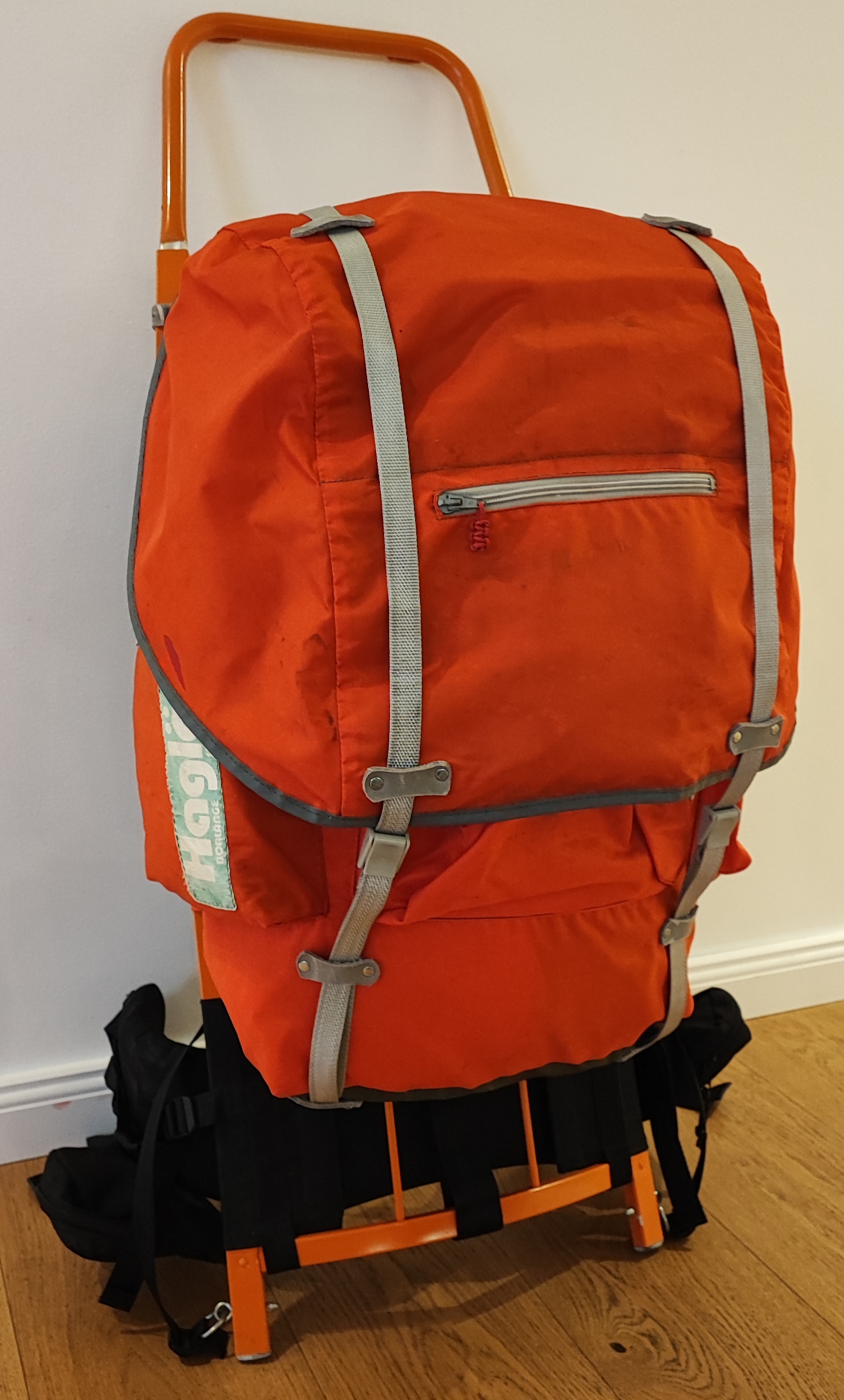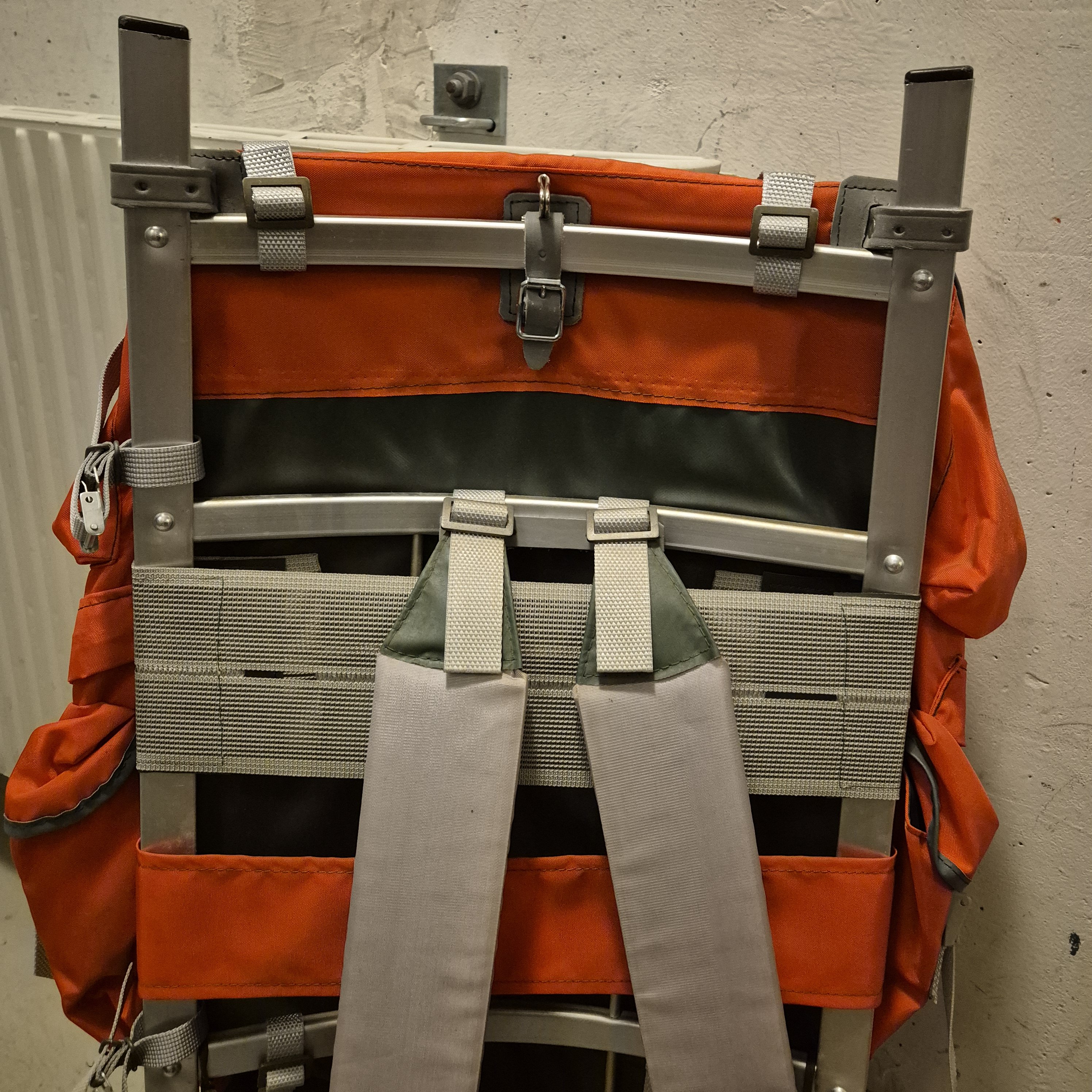 Provade att gå ut på en tur med den helt original men insåg snabbt att iaf axelremmarna kommer få bytas ut till ett exemplar av senaste sort. Fixlocklåset till avbärarbältet är också helt horribelt så har bytt ut till ett modernt snäppspänne sen bilden togs. Även sugen på att byta ut samtliga Fixlockspännen, de är sjukt omständliga och kassa, på säcken till antingen G-krokar eller vita snäppspännen så blir det nog bra.
