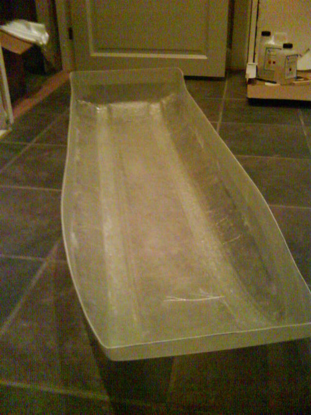 Jag har gjort en liknande pulka i glasfiber men betydligt mindre. Mitt tips är dock att bygga formen i byggfrigolit. Enklare att forma och få till hörn.
