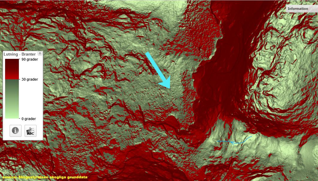2. Once in the higher parts of Trolldalen, how do I get up to the plateau west of the great lakes? I have sketched two options below. I have found some discussion that mentions the path north of Snotoppen by Hans Nydahl (https://www.utsidan.se/blogs/trolldalen/gomda-dalen.htm). He seems unsure whether this route is actually possible or not. The path south of Snotoppen seems to avoid any steep parts so this may be a better option.
