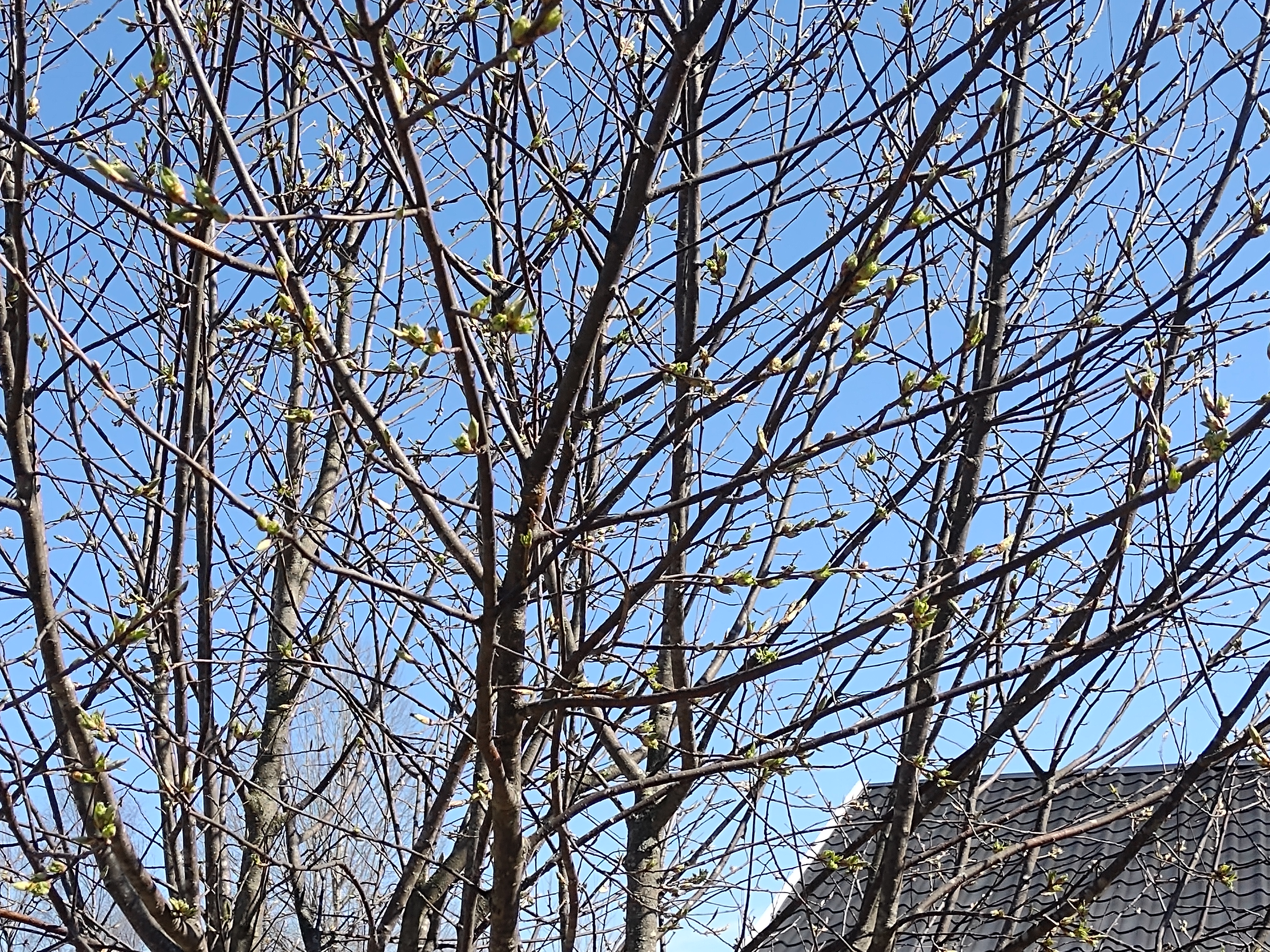 Häggens blad håller på att slå ut.