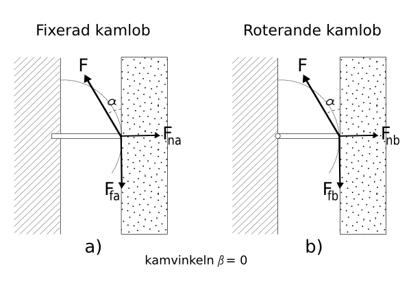 om kammen har rörliga lober (som sig bör), så är det frestande att tro att det kan tillkomma ett bidrag till normalkraften som har med kammens utväxling att göra, och med liten vinkel skulle den kunna vara rätt stor.