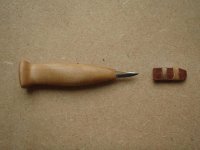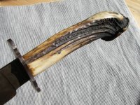 Den har ingått i Edwards personliga Re-enaction utstyrsel och är en av de knivar, som jag har haft som förebild för mina egna försök med Rosenkrans skaft.