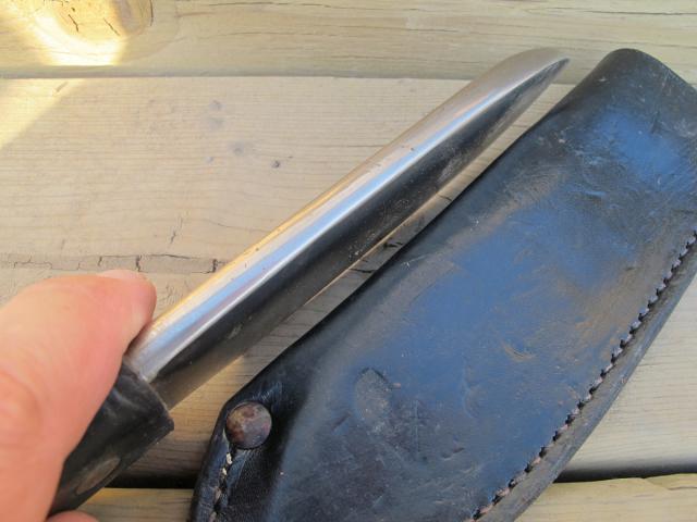 Och här kommer ytterligare en huggare – som avgjort väger för mycket för att släpa runt på. Tror den hamnar på närmare kilot med slidan. Elva tums blad. Men det är fin kvalitet, köpt på ort och ställe i Nya Zeeland, stålet är svenskt vill jag minnas.