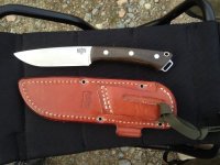 Jag har aldrig ägt någon Benchmade. Möjligen kan det ändra sig. Den här skapelsen ser rätt intressant ut. Inga direkta dysfunktionella designmissar med choil, ansats och slipning. Trots väsentligen samma längd som Fällkniven PXL (men en mycket behagligare bladtjocklek på under 2.5 mm) så väger den blygsamma dryga 50 gram. Dvs i samma viktklass som min Vic Alpineer.