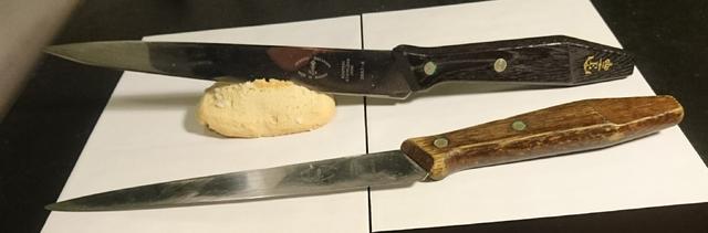 4. Kn-kniven stack upp bland batterierna i soprummet tillsammans med en med samma profil, men med träskaft.