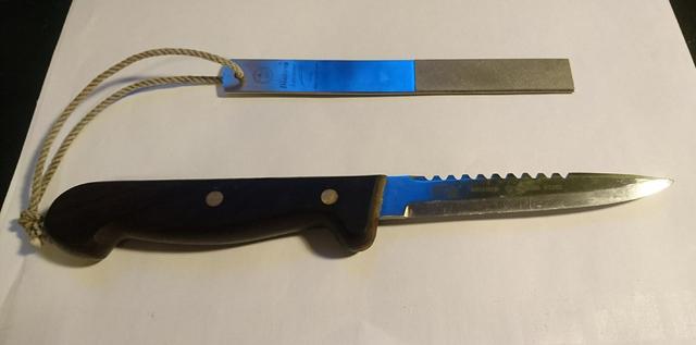 Lägger in en bild på något jag vet vad det är. Frosts fiskekniv. Någon innan mig har slipat den slarvigt och repat bladet. Fick snabbt fin skärpa med diamantslipen.