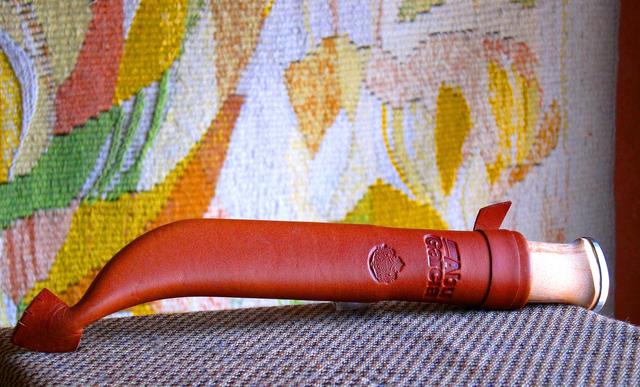 Precis så gör jag medtill companion. Man har ett i bältet, och hakar fast kniven när det är dags.