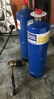 Fick detta av bonussvärfar, tänkte ev. använda för upphettning av mindre blad, men är helt rudis på brännare. Oklart om gasol blir varmt nog. Munstycket har använts för vallning av skidor och lämpar sig knappast för upphettning av metall. Eller? Någon som vet?