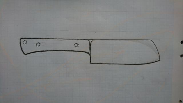 Har lite RWL 34 2.6x38 mm kvar och funderar lite på en portabel mini kökskniv med blad ca 105 mm. Lite grovt skissat. I verkligheten tänker jag dra upp buken försiktigt redan från hälen.