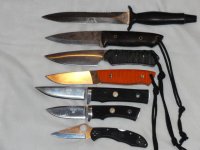har oftast Spyderco runt halsen i ett kydex fodral, riktigt praktiskt när man behöver en kniv till småsaker(används oftast för att ta ur djur med, lätt att komma åt överallt.). Sen har Seveds knivar fått tjänstgöra den här säsongen till allt ifrån fixa eld till avsluta dåliga skott ifrån pass skyttar...... mycket nöjd.