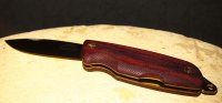 3: Seved har gjort bladet: svart micarta,rostfria pins & röd vulcanfibrer.