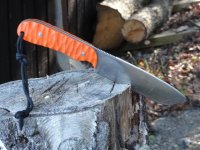 Täljer man mer än 1h så får man ju blåsor i handen. Med micarta handtaget så kan man tälja mer än 4-5h utan att ens få skavsår. Jag täljer alltid något som bestick, gubbar, pipor mm när jag är i fjällen. Dessutom så håller den skärpan bättre an någon annan kniv jag har. Har med den på fisketurer, vanlig camping, fjällen mm. Jag slipar den ca 1 gång om året, innan jag åker till fjällen.