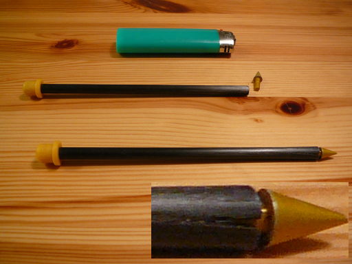 15 cm långa med en knopp av 10 mm kolfiberrör. Nu är spettsen doppad i epoxi också. Väger 3 gram styck.