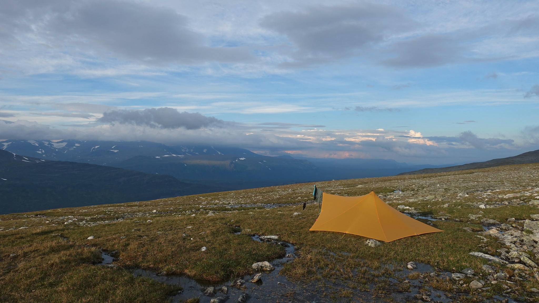 Jag har en version med uppdragna sidor på innertältet så att det inte är nätväggar runt om. Det tar bort dom kalla fjällvindarna som annars smiter under yttertältet. Furstligt med utrymme för mig och möjlighet att rymma en till om utrustningen lämnas utanför. Sätter upp det med litet specialarrangemang med hjälp av stavar och en lina så att det inte säckar ihop om det skulle regna. Då slipper jag ta med mig 2 st extra bågar som man annars kan köpa till.