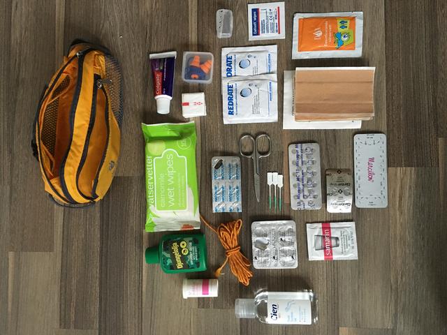 (...) Här är ett kort av min första hjälpen och hygiene grejer. Precis 199 gram och jag ser inte vad jag kunde ta bort. Har redan ingen tvål/ schampoo.