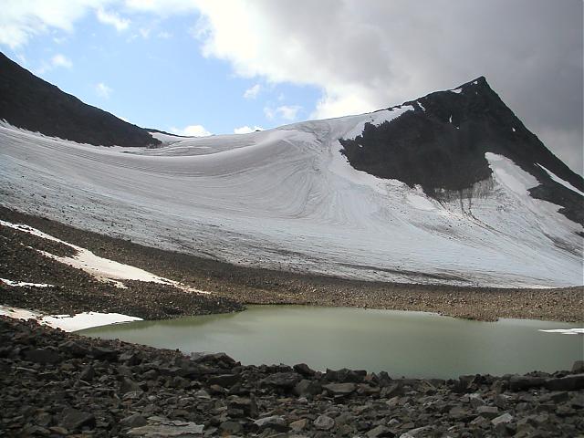 Föreslår att du följer "glaciären" i kanten mot drakryggen, som det var 2006 verkade det vara rätt sunt, tills man kommer upp på kammen. Tyvärr var det snöblandat regn och storm när vi gick den så det var väldigt otrevligt uppe på kammen som är rätt exponerad stundtals, i solsken är den rätt lätt.