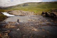 - Ráhkojåhkå - här finns en vadplats markerad på fjällkartan precis där bäcken smalnar av innan den rinner ut i Virihávrre. Där borde det väl inte vara några problem?