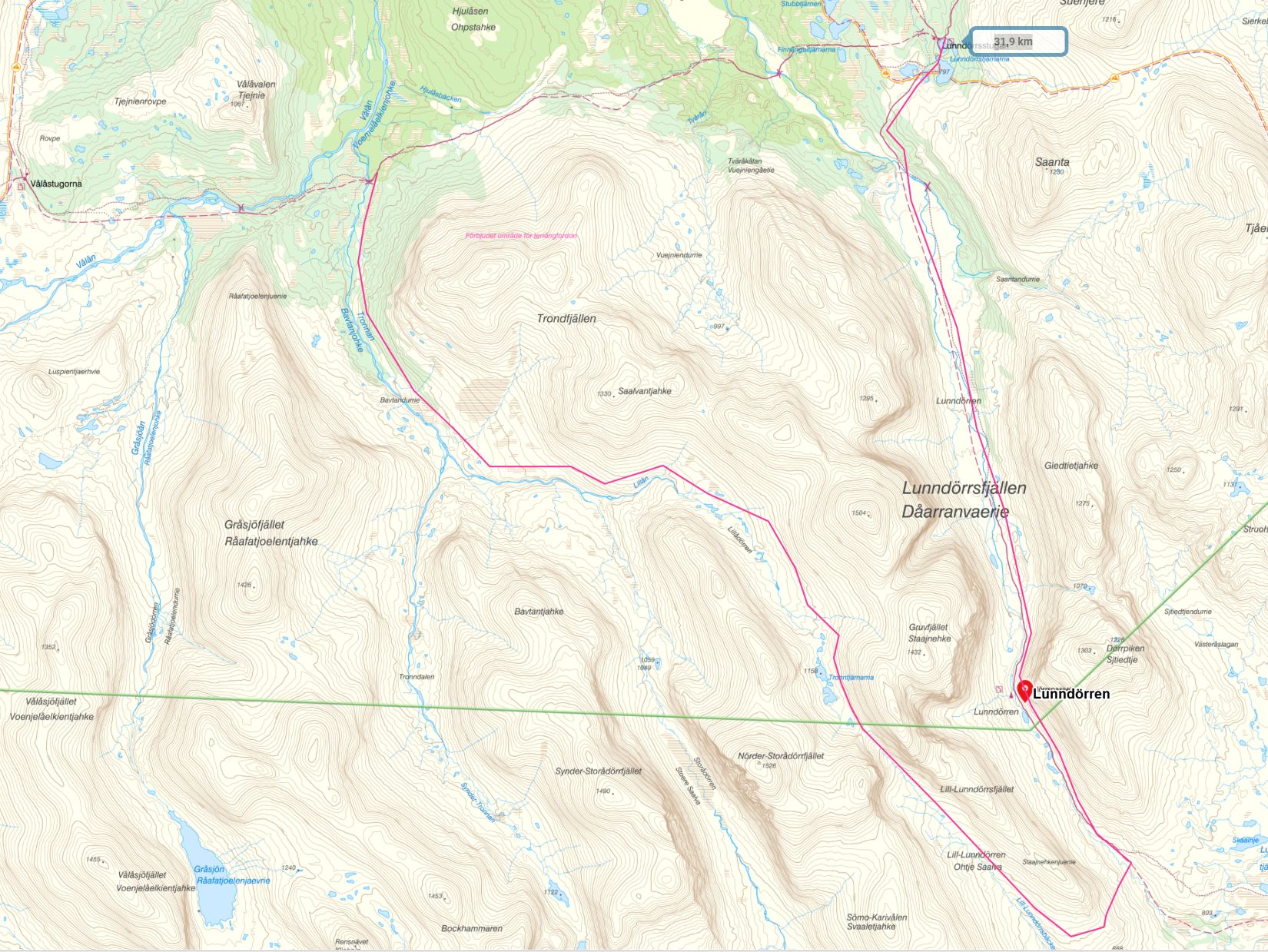 2. Vi leker också med tanken på att få in nån eller några dörrar i Lunndörrsfjällen på turen! Tänkte att man skulle kunna gå oledat för att uppleva Lunndörren och Lill-Lunndörren från leden mellan Vålåstugorna och Lunndörrsstugorna. Se min idé på vägval i bifogad bild, kan denna väg funka? Vill man gå längre upp på ryggen vid Lill-Lunndörrsfjälet för bättre utsikt? Eller har ni andra idéer/förslag/medskick?
