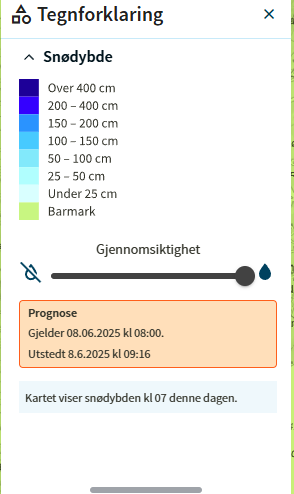 Baserad på dina skermdump så är det inte säkert att du har brukt rätt lager. Byt visningslager till snödjup så för du följande karta.