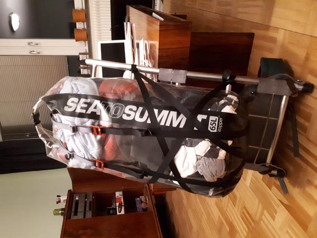 Min tanke är att köpa en 65literssäck från seatosummit och fästa vid en fjällrävenram från 70-80tal som vi har liggande i källaren. Jag har inte så mycket kunskap om alla olika gamla ramar, men jag inbillar mig att den erbjuder en hyffsad komfort och bra bas att utgå från. Tidigare har Jag använt en Haglöfs Alaska, och det var en helt fantastisk bärupplevelse bortsett från vikten på säcken.