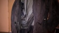 Den har en stor huva med en liten skärm, är i Gore Tex XCR, har nät på insidan. På vänster arm finns en liten ficka nere vid underarmen, det är ventilation under armhålorna och på framsidan finns två fickor på nederdelen samt två bröstfickor med lodräta blixtlås. Innanför kardborrarna till blixtlåset finns en innerficka med lodrätt blixtlås.