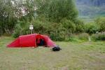 Minus:Är 187cm och stöter igenom innertältet med sovsäcken på natten, medför att jag vaknar på morgonen med blöt fotände på sovsäcken. Har den äldre modellen med bara en ingång, vilket kan göra att man i värsta fall får ta ner tältet med vinden rakt in i absiden.