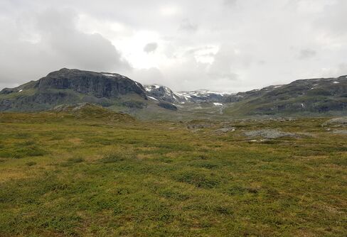 Morgon vid Alesjaure. Natten har varit fin och vindstilla, himlen är grå. Det märks inuti mitt tält, ...