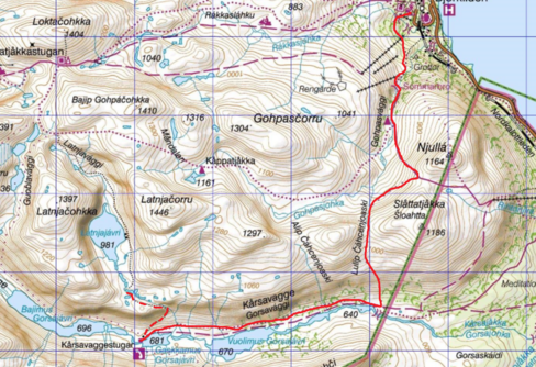 En tur från Låktatjåkka till Nikkaloukta, med ett flertal omvägar.