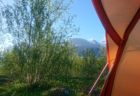 Det var en god natt, och vi vaknade till nästan kalasväder. Gråväder, men det spelade ingen roll. Nu skulle vi äta frukost, packa ihop tälten och ...