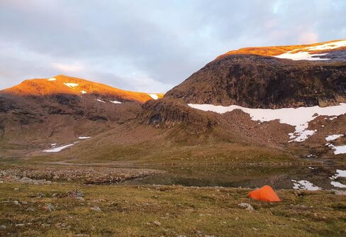 Nu skulle Bunnerfjällen utforskas, och efter en god och rejält mättande middag hade jag spänt på mig ryggsäcken och satte kurs mot Nulltjärnarna, där ...