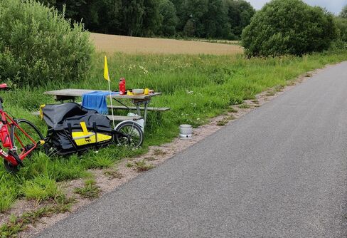 Det gick segt efter Ödeshög, vinden hade vridit sig så att den tidigare medvinden nu var sidvind och min cykeltrailer var tydligen inte lika ...